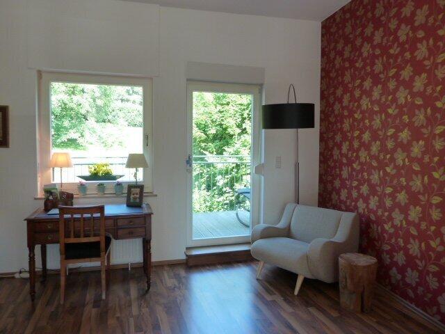 Wohnfläche: ca. 153 m² verteilt auf zwei Ebenen Altbaucharme: Sichtbalken, großzügiger Grundriss, kernsaniert Wohn-/Essbereich: mit Kaminofen, Zugang zum Balkon und Blick in den Park Balkon: ruhig gelegen, mit schöner Aussicht & Gartenmitbenutzung Küche: Hochwertige Einbauküche (TOP-EBK) mit allen Geräten Bad: Tageslichtbad mit großer Dusche, modern und elegant Gäste-WC: separat im Eingangsbereich Schlafzimmer: Zwei helle Schlafzimmer im Dachgeschoss mit Parkblick Bodenbeläge: Überwiegend Laminat Ankleide: Maßgeschneiderte Einbauten im Dachgeschoss Garderobe: Maßgefertigter Garderobenschrank im Eingangsbereich Waschmöglichkeit: Waschmaschinenanschluss in der Wohnung oder im separaten Waschraum – freie Wahl separater Abstellraum + zusätzlicher Stauraum auf der Zwischentreppe